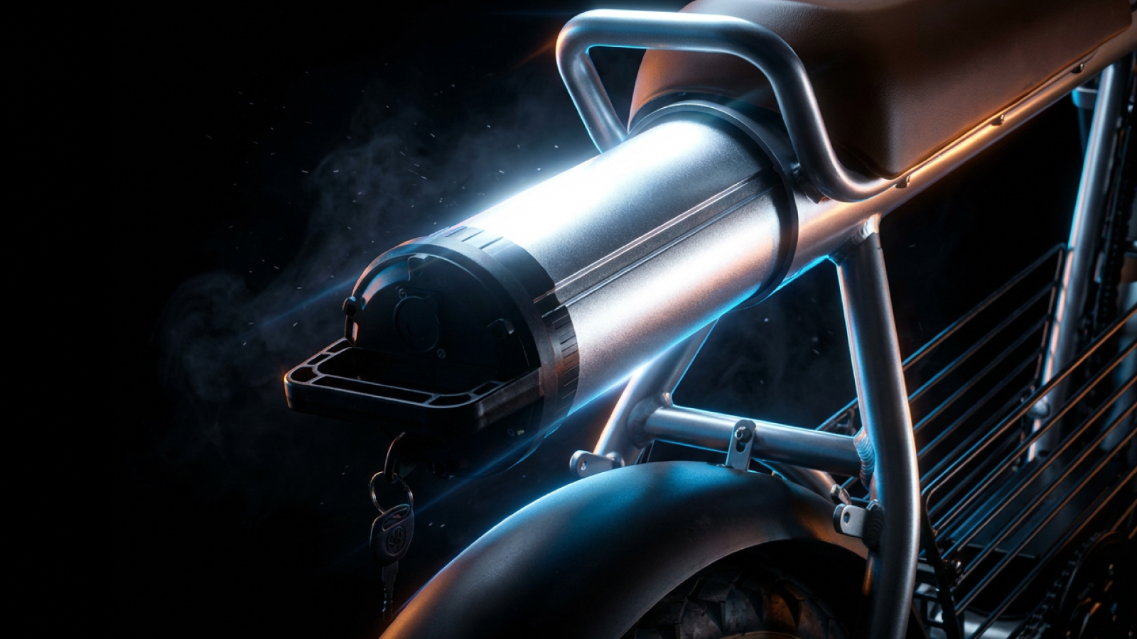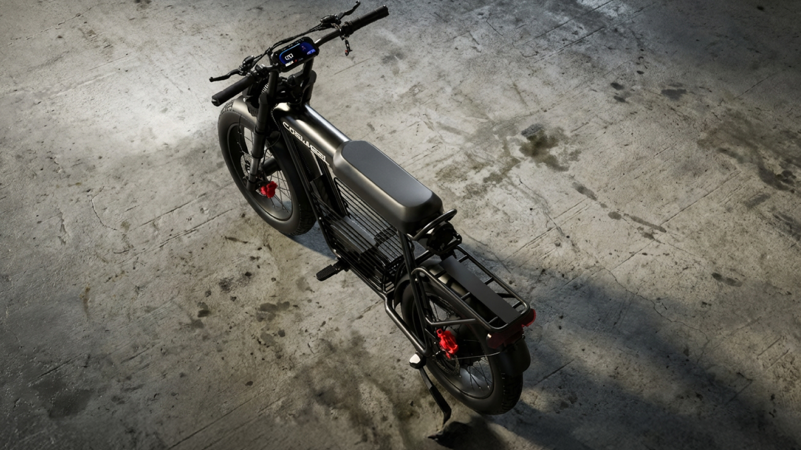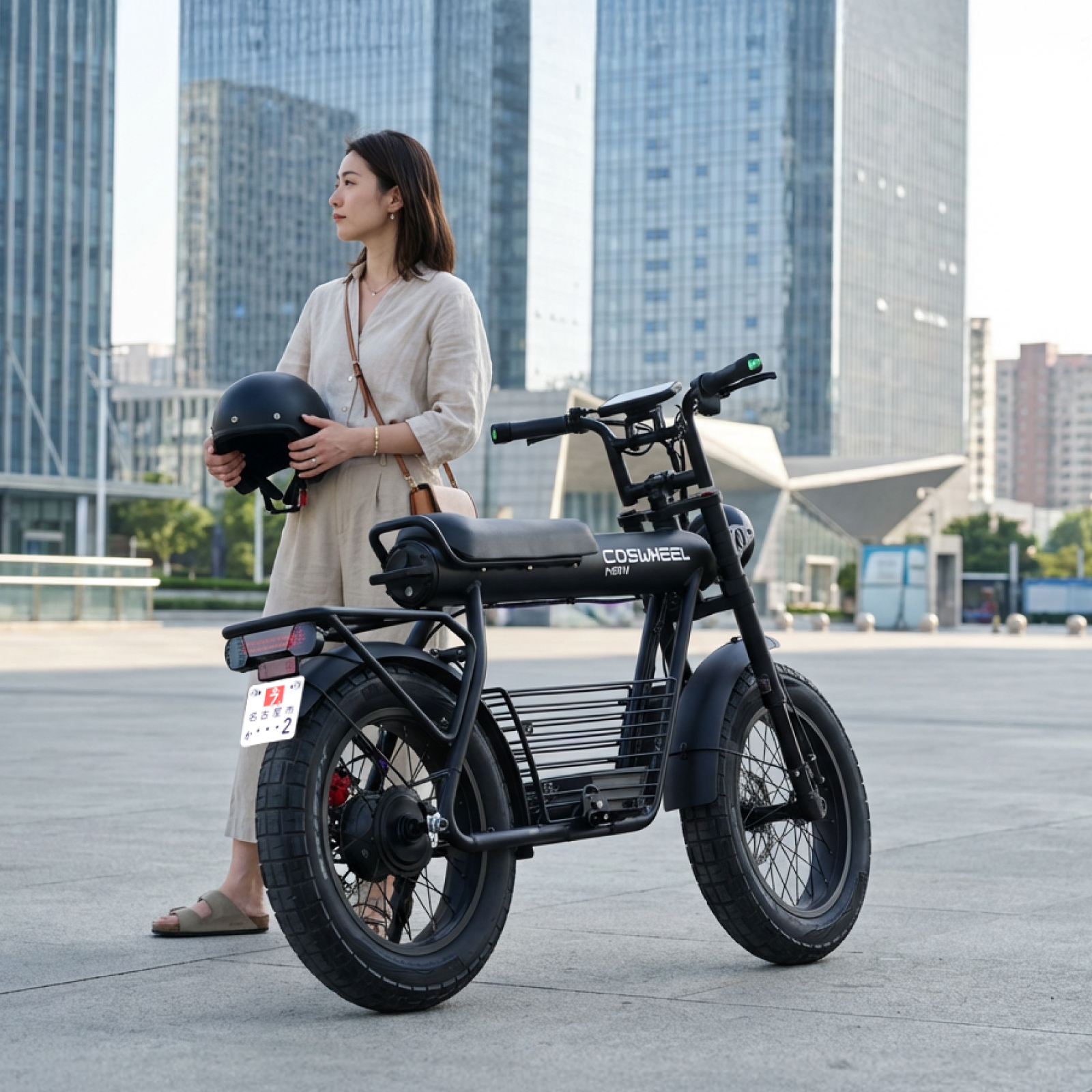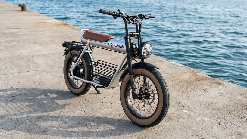 個性を解き放つデザイン:COSWHEEL MIRAI Gは、街中でひと目を引く骨太フレームと、力強く主張する4インチの極太タイヤを備えた、唯一無二の存在感を持つ特定原付電動バイク。