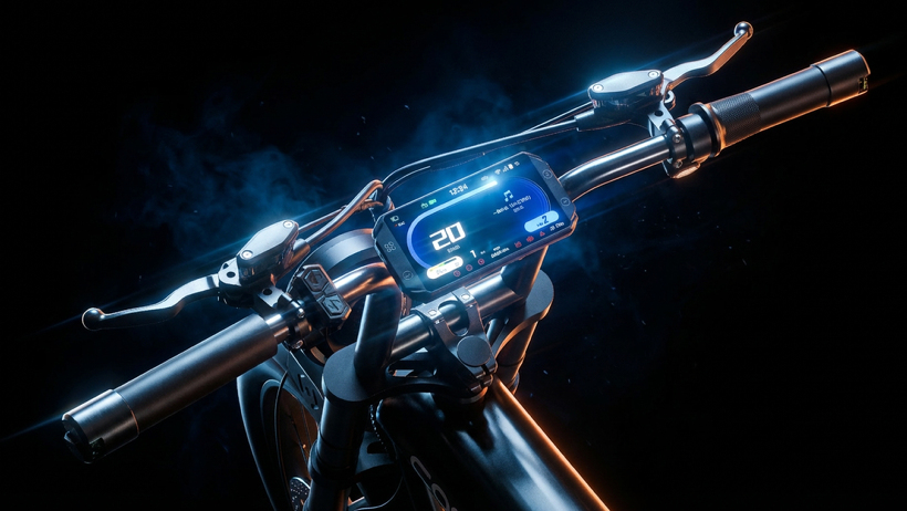 スマートディスプレイ:未来感溢れるスマートディスプレイは、本格バイクを彷彿させる細部まで拘った仕様です。Bluetooth対応で、スマートフォンと接続し音楽を聴くこともできます。