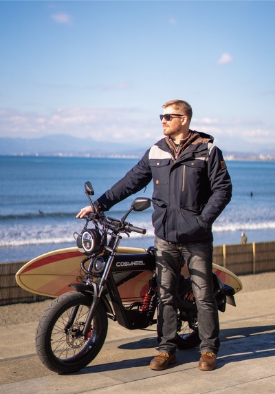 「移動の未来を変える」をコンセプトとした「MIRAI」シリーズはデザイン性・走行性・安全性を兼備、未来の新しいかたちの電動バイクです。1,000Wモーター・ABSシステム搭載モデル原付二種「COSWHEEL MIRAI」、500Wモーター搭載モデル原付一種「COSWHEEL MIRAI S」、二つのモデルを同時発売します。カラーバリエーションはネイビーミリタリー、ピュアホワイト、マットブラック、スカイグレーの多彩な4色になります。超大容量バッテリー27.5Ahのスペックで航続距離80kmを超えます。楽しくスムーズで快適な移動のモビリティとして、新しい移動スタイルの提案をしていきます。