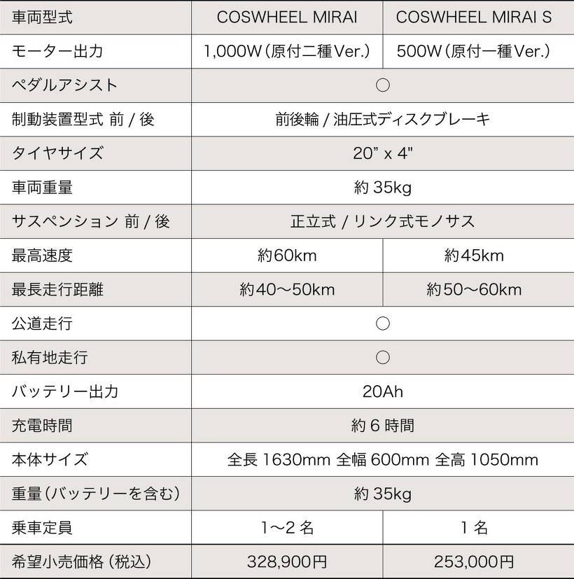 【プレスリリース】次世代型電動バイク「COSWHEEL MIRAI」、3月1日発表、3月9日先行発売、航続距離80km超の27.5Ah超大容量バッテリーも同時発売