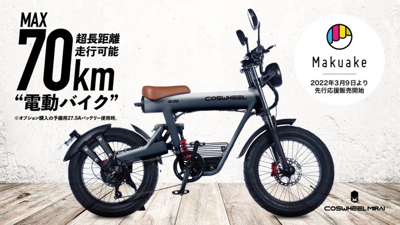 同シリーズ製品の3WAY電動バイク「COSWHEEL MIRAI」は3月9日にもMakuakeにて先行応援発売中です。15日現在は6千万応援額が達成しています。リターン価格は161,800円(税込)からになります。