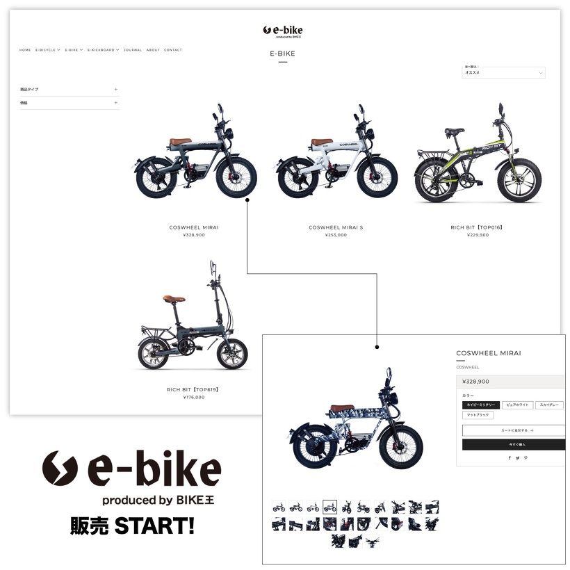 「ENJOY TO RIDE」をコンセプトとした電動モビリティのECショップ『e-bike』は、株式会社バイク王&カンパニーの子会社でeコマース事業を手がける株式会社バイク王ダイレクトより展開する電動モビリティのセレクトショップとなります。