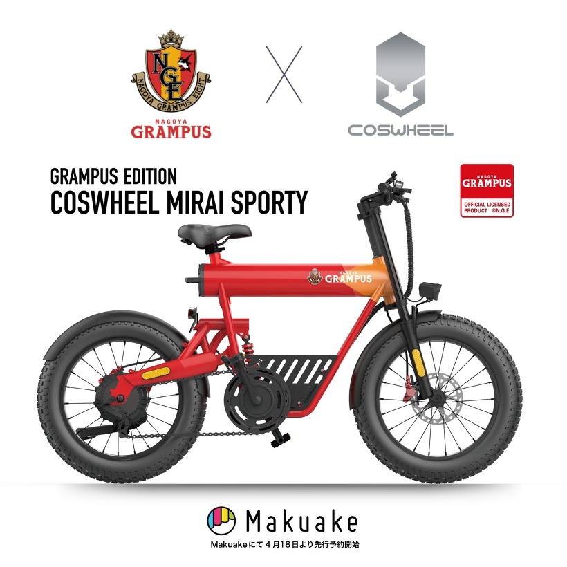Jリーグ 名古屋グランパスエイトとコラボレーションした「GRAMPUS EDITION」はCOSWHEEL MIRAIの最新技術と名古屋グランパスのスポーツ精神の融合です。スポーティかつ洗練された特別な一台を是非ご体験ください。